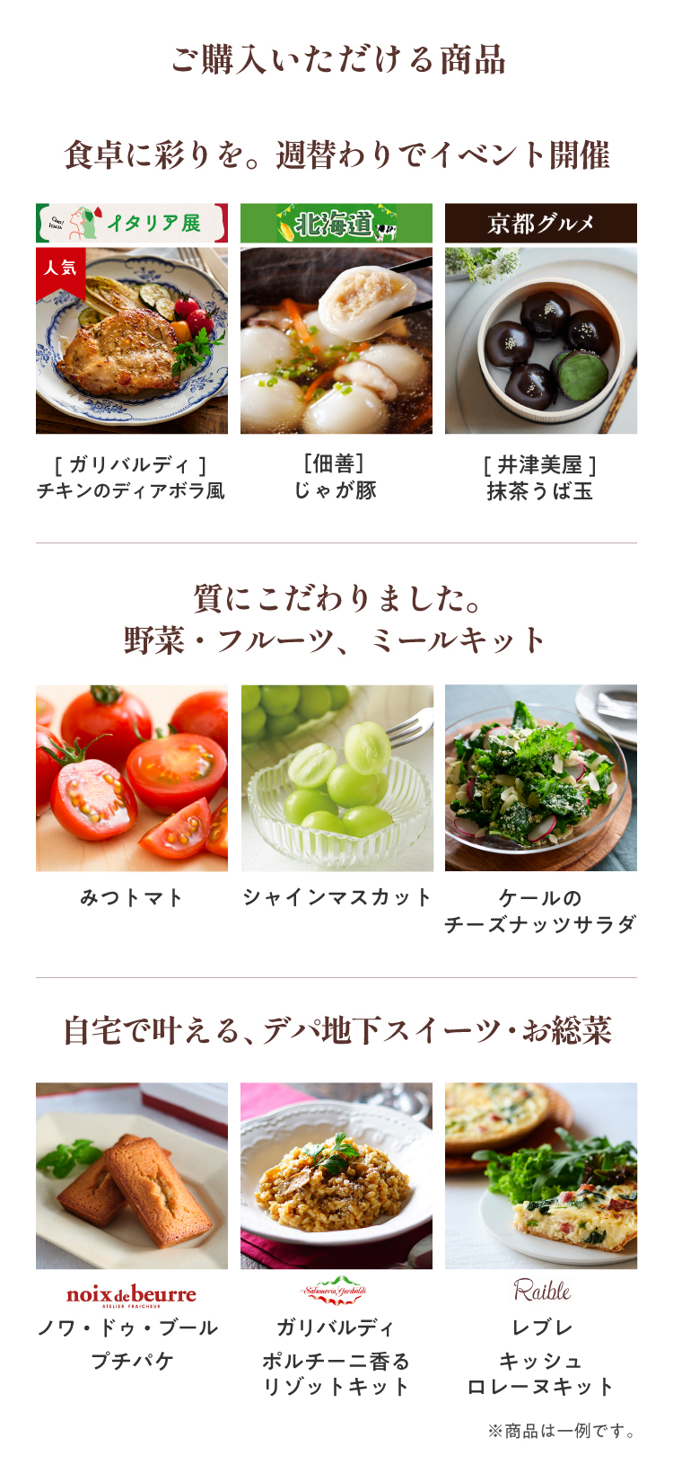 ISETAN DOORは、 伊勢丹でしか買えないデパ地下商品から 牛乳や卵など 毎日の食卓に欠かせない食品まで 種類豊富に取り揃えております。