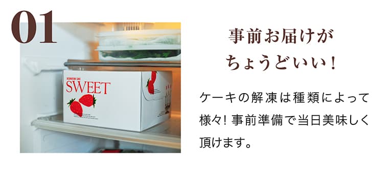 • ・ お客さまのご都合に合わせて、ご必要であればお届け日時の変更をお願いします。