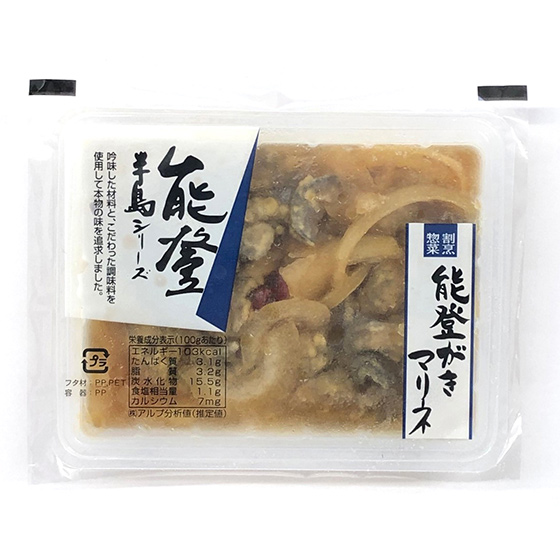 | 原材料 | かき貝(能登産)、玉ねぎ(国産)、純米醸造酢、丸大豆しょうゆ(大豆・小麦を含む)、なたね油、砂糖、本みりん、小麦粉、ごま油、純米酒、唐辛子 |