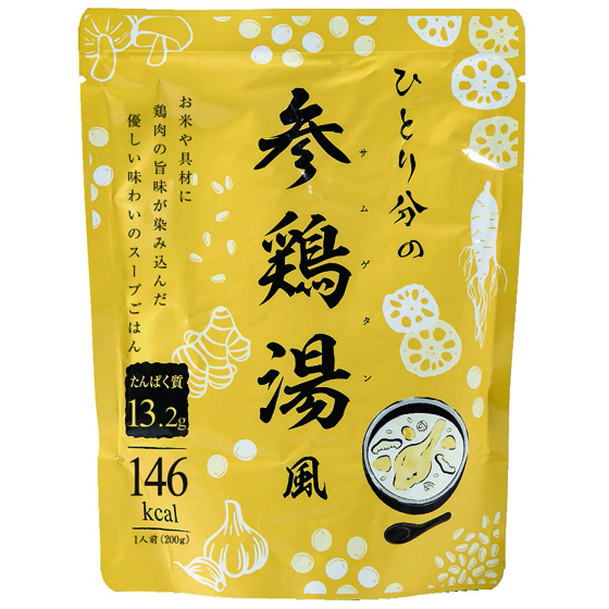 | 原材料 | 鶏肉(国産)、精白米(国産)、水煮れんこん、チキンブイヨン、もち米(国産)、ぎんなん水煮、チキンエキス、乾椎茸、松の実、食塩、生姜ペースト、酵母エキス、香辛料、にんにくペースト、高麗人参エキスパウダー |