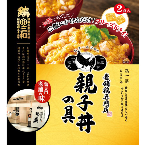 | 原材料 | 鶏卵(国産)、鶏肉、醤油、水あめ、本みりん、砂糖、でん粉、植物性油脂、抽出だし(いわし煮干し)、醸造調味料、たん白加水分解物、食塩、酵母エキス、がらスープ粉末、かつおエキス調味料、かつお節粉末/調味料(アミノ酸等)、増粘剤(キサンタンガム)、カラメル色素、カロテン色素、酸化防止剤(ビタミンE)、酸味料、(一部に小麦・卵・ごま・大豆・鶏肉・豚肉を含む) |