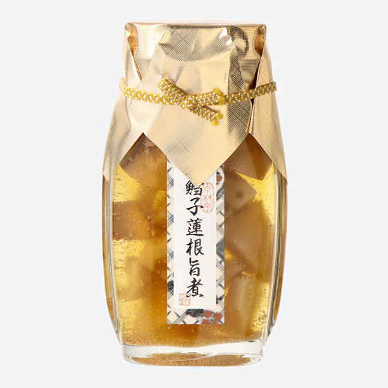 | 原材料 | 水煮蓮根{蓮根(中国産)}、真鱈の卵巣、醤油、砂糖、清酒、味醂、和風だし(鰹、昆布、食塩、酵母エキス、還元麦芽糖)、食塩/酸味料、pH調整剤、メタリン酸Na、酸化防止剤(V.C)、調味料(アミノ酸)、漂白剤(次亜硫酸Na)、ミョウバン、(一部に小麦・大豆を含む) |