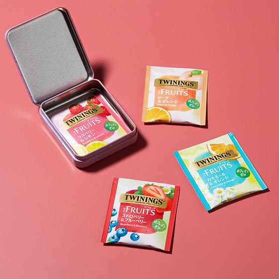 | 原材料 | ●フルーツハーブティー:<ピーチ&オレンジ>ハイビスカス、ローズヒップ、りんご、バオバブ、チコリの根、オレンジ果皮/香料(もも由来)、甘味料(ステビア)<ラズベリー&レモン>ハイビスカス、ローズヒップ、ブラックベリーの葉、バラの花弁、レモン果皮、リコリスの根/香料、甘味料(ステビア)●ハーブティー<カモミール&オレンジ>カモミール、リンデン/香料(オレンジ由来)、甘味料(ステビア)<ストロベリー&ブルーベリー>ハイビスカス、ブラックベリーの葉、レモングラス、リコリスの根/香料 |