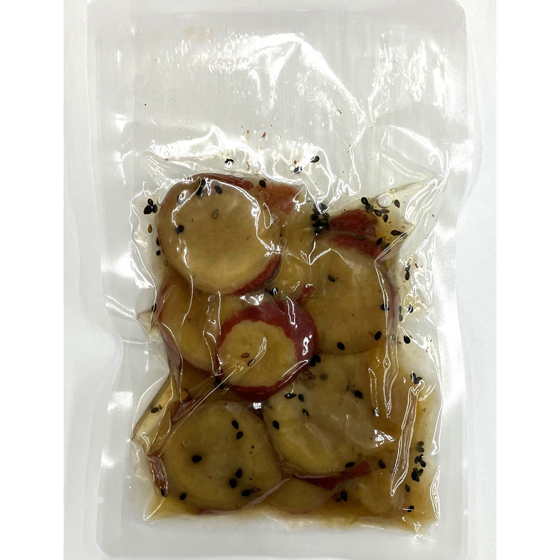 | 原材料 | さつまいも(紅はるか(国産))、三温糖、醤油、食用植物油脂、醗酵調味料、食塩、ごま、酵母エキス、(一部に小麦・大豆・ごまを含む) |