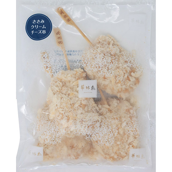 | 原材料 | 鶏ささみ(九州産)、クリームチーズ、食塩、香辛料、衣(パン粉、小麦粉、鶏卵、でん粉、植物性大豆たん白、食塩、ぶどう糖)/乳化剤、(一部に小麦・卵・乳成分・大豆・鶏肉を含む) |