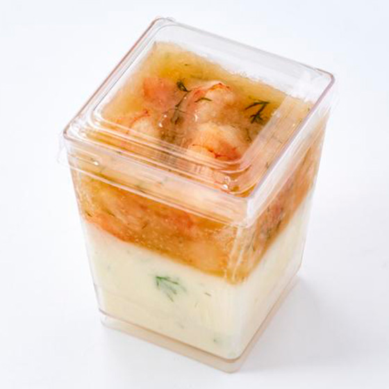 | 原材料 | ナチュラルチーズ(国内製造)、えび、コンソメ、乳等を主要原料とする食品、レモンジュース、アスピックゼリー、食塩、ディル、ゼラチン/トレハロース、加工澱粉、調味料(アミノ酸等)、クエン酸、乳化剤、グリシン、香料、酢酸Na、pH調整剤、酸味料、着色料(カラメル)、ポリリン酸Na、保存料(しらこ)、増粘多糖類、香辛料、安定剤(加工澱粉)、(一部にえび・小麦・卵・乳成分・牛肉・さけ・大豆・鶏肉・豚肉・ゼラチンを含む) |