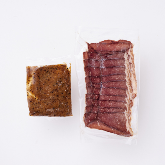 | 原材料 | 【ローストビーフ】牛肉(アメリカ)、食塩、香辛料、たん白加水分解物調味料、粉末油脂/香料、着色料(カラメル)、(一部に小麦・牛肉・大豆を含む)【トリュフ入りソース】たれ(水飴、食塩)(国内製造)、チキンブイヨン、オニオンソテー、きのこ加工食品、醤油、果実酒、醗酵調味料、寒天、植物油脂、食塩、にんにく、黒胡椒/増粘剤(加工澱粉、増粘多糖類)、トレハロース、酒精、着色料(カラメル)、pH調整剤、ソルビット、V.B1、調味料(アミノ酸等)、香料、酸化防止剤(亜硫酸塩)、(一部に小麦・大豆・鶏肉を含む) |