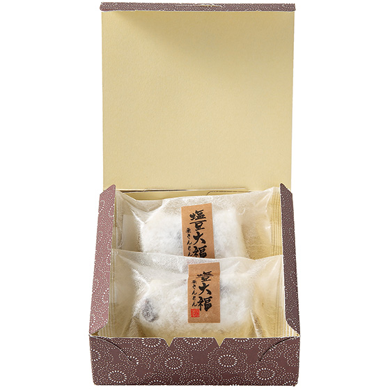 国産栗の栗きんとんを甘塩っぱい塩豆大福に仕上げました