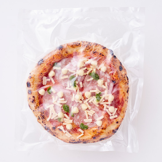 | 原材料 | ラスト(小麦粉(国内製造)、食用植物油、食塩、その他)、ナチュラルチーズ、粗ごしトマト、ソフトサラミソーセージ、バジルペースト、食用植物油、食塩、燻製油脂/セルロース、膨張剤、V.C、安定剤(加工デンプン)、酸味料(クエン酸)、pH調整剤、発色剤(亜硝酸Na、硝酸K)、着色料(アナトー)、(一部に小麦・乳成分・豚肉を含む) |