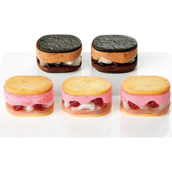 | 原材料 | 【いちごバターチーズサンド】苺餡(国内製造)、羽二重餅、バター、ドライ苺、小麦粉、苺ジャム、グラニュー糖、準チョコレート、乳等を主要原料とする食品、卵、クリームチーズ、アーモンドプードル、洋酒/トレハロース、香料、安定剤(増粘多糖類)、乳化剤、酸味料(クエン酸、クエン酸Na)、酵素、酸化防止剤(亜硫酸塩)、着色料(赤色40号、赤色102号、紅麹色素)、(一部に小麦・卵・乳成分・大豆・アーモンド・オレンジを含む) 【チョコバターチーズサンド】羽二重餅(国内製造)、準チョコレート、バター、チョコレート、小麦粉、グラニュー糖、乳等を主要原料とする食品、卵、白餡、クリームチーズ、アーモンドプードル、コーヒー、ココアパウダー、洋酒/トレハロース、香料、乳化剤、酵素、安定剤(増粘多糖類)、(一部に小麦・卵・乳成分・大豆・アーモンド・オレンジを含む) |