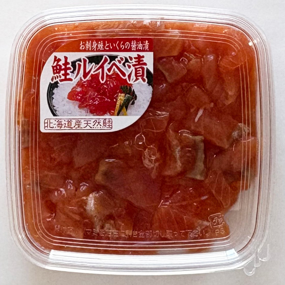 | 原材料 | 秋鮭(北海道産)、秋鮭の卵(いくら)(北海道産)、醤油(小麦・大豆を含む)、還元水飴、米発酵調味料、食塩、鮭の魚醤/酸味料、トレハロース、酸化防止剤(ビタミンC)、調味料(アミノ酸等)、パプリカ色素、酵素 |