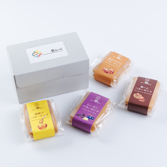 | 原材料 | <栗ームバターサンド>発酵バター(国産)、栗、小麦粉(国産)、砂糖、カカオバター、全脂粉乳、脱脂粉乳、卵、ラム酒、塩/乳化剤、香料、<塩キャラメルバターサンド>発酵バター(国産)、小麦粉、砂糖、カカオバター、全脂粉乳、脱脂粉乳、卵、植物性油脂、塩/乳化剤、香料、<レーズンバターサンド>発酵バター(国産)、小麦粉、レーズン、砂糖、カカオバター、全脂粉乳、脱脂粉乳、卵、植物性油脂、ラム酒/乳化剤、香料、<秘蜜のバターサンド>発酵バター(国内製造)、小麦粉、はちみつ、砂糖、全卵、カカオバター、全脂粉乳、脱脂粉乳、/乳化剤、香料、(一部に乳、卵、小麦、大豆を含む) |