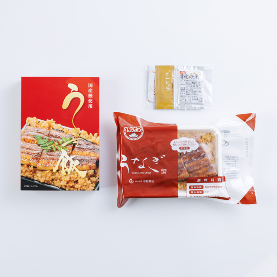 | 原材料 | [うなぎ飯]米(宮崎県産)、うなぎ(宮崎県産)、本醸造醤油(大豆・小麦を含む)、発酵調味料、水あめ、砂糖混合ぶどう糖果糖液糖、みりん、砂糖、澱粉[たれ]本醸造醤油 (大豆・小麦を含む) (国内製造)、みりん、発酵調味料、砂糖、澱粉[さんしょう]山椒(国産)花椒[お吸いもの]食塩(国内製造)、粉末醤油(小麦・大豆を含む)、えび粉末、鰹節粉末、椎茸粉末、昆布粉末、食用植物油脂、香辛料、うきみ・具(わかめ、ごま、ねぎ)/調味料(アミノ酸等) |