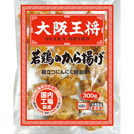| 原材料 | 鶏肉(タイ産)、衣(でん粉、小麦粉、ぶどう糖、コーンフラワー、ガーリック粉末、植物性たん白、植物油脂、粉末しょうゆ、食塩、脱脂粉乳、乾燥全卵)、アミノ酸液、しょうゆ、おろししょうが、砂糖、おろしにんにく、食塩、揚げ油(大豆油)/加工でん粉、増粘剤(メチルセルロース、キサンタンガム)、炭酸カルシウム、乳化剤、(一部に小麦・卵・乳成分・大豆・鶏肉を含む) |