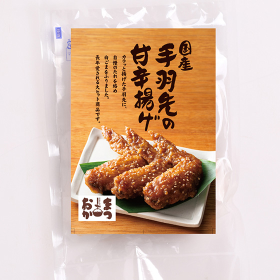 | 原材料 | 鶏手羽先(国産)、しょうゆ加工品(砂糖、しょうゆ、水あめ、発酵調味料、粉末しょうゆ、その他)、小麦粉、ごま、植物油脂、味付塩こしょう/酒精、調味料(アミノ酸)、香辛料、(一部に小麦・ごま・大豆・鶏肉を含む) |