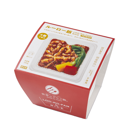 | 原材料 | 十穀ご飯【米(国産)、十穀(押麦、もちきび、もちあわ、小豆、緑豆、もち黒米、黒豆、黒ゴマ、発芽玄米、アマランサス)】、ルーロー【豚肉(国産)、野菜(パプリカ、小松菜)、醤油、はちみつ、砂糖、発酵調味料、しょうが、馬鈴薯でん粉、ポークブイヨン、五香粉、唐辛子】/カラメル色素、(一部に小麦・豚肉・大豆・ごまを含む) |