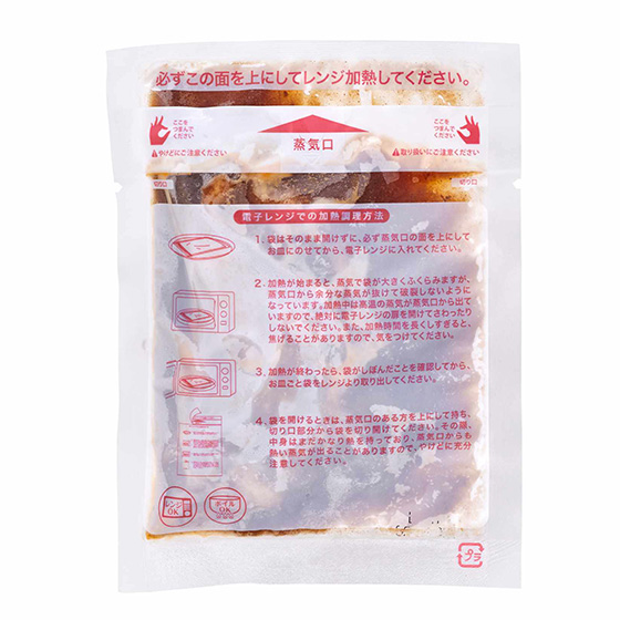 | 原材料 | 豚肉(国産)、しょうゆ、はちみつ、砂糖、発酵調味料、しょうが、馬鈴薯でん粉、ポークブイヨン、五香粉、チリパウダー、(一部に小麦・大豆・豚肉を含む) |