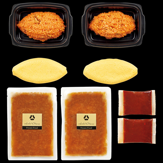 | 原材料 | 【オムレツ】液卵(国内製造)、植物油脂、クリーム、食塩、砂糖、でん粉発酵調味料、乳たん白、ほたてエキスパウダー、チキンブイヨンパウダー/加工でん粉、トレハロース、増粘多糖類、ピロリン酸ナトリウム、乳化剤、調味料(アミノ酸等)、カロチノイド色素、(一部に卵・乳成分・小麦・大豆・鶏肉を含む)【デミグラスソース】デミグラスソース(野菜(玉ねぎ、人参、セロリ)、トマトペースト、チキンエキス、その他)(国内製造)、フォンドヴォー(仔牛骨、デミグラスソース、牛肉、野菜(玉ねぎ、人参、セロリ)、ビーフエキス、その他)、ワイン/増粘剤(加工デンプン)、カラメル色素、調味料(アミノ酸等)、(一部に小麦・牛肉・大豆・鶏肉・豚肉・ゼラチンを含む)【チキンライス】米(国産)、米飯用調味料、玉ねぎ、鶏肉、トマトケチャップ、マッシュルーム水煮、植物油、バター、チキンコンソメ/調味料(アミノ酸等)、着色料(パプリカ色素、カラメル)、pH調整剤、酸化防止剤(V.C)、酸味料、(一部に小麦・乳成分・大豆・鶏肉・豚肉を含む)【オニオンスープ】ソテーオニオン(国内製造)、牛肉(オーストラリア産)、粉末調味料、玉ねぎ(国産)、液卵白、トマトピューレー、にんじん、チキンエキス、セロリ、ゼラチン、にんにく、香辛料/増粘剤(加工でん粉)、着色料(カラメル)、(一部に小麦・卵・乳成分・牛肉・大豆・鶏肉・豚肉・ゼラチンを含む) |