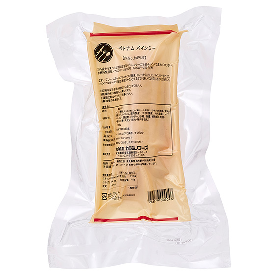 | 原材料 | パン[小麦粉、ミックス粉(ライ麦粉、小麦粉)、砂糖、植物油脂、食塩、酵母]、ボンレスハム(国内製造)、大根(国産)、人参(国産)、レバーペースト、醸造酢、パクチー、砂糖、魚醤、植物油脂、食塩、(一部に小麦・乳成分・豚肉・鶏肉を含む) |