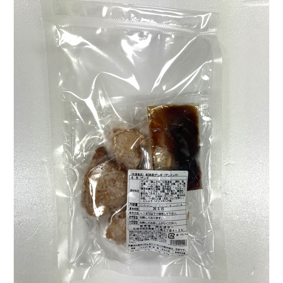 | 原材料 | ザンギ「鶏ムネ肉(北海道産)、澱粉、酒、生姜、ニンニク、塩、胡椒、砂糖、レモン果汁、(一部に鶏肉・卵を含む)」、タレ「砂糖混合異性化液糖(国内製造)、ウスターソース、しょうゆ、砂糖、ゆず果汁、醸造酢/着色料(カラメル)、酒精、増粘剤(キサンタンガム)、甘味料(カンゾウ)、香辛料抽出物、(一部に小麦・大豆・りんごを含む)」、こしょう(インドネシア産) |