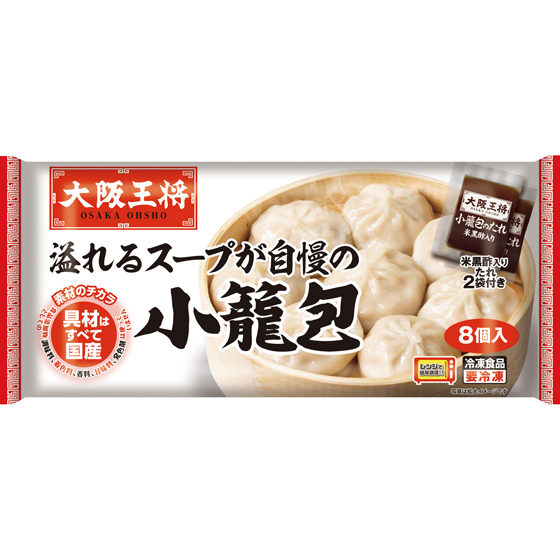 | 原材料 | 【小籠包】豚肉(国産)、粒状植物性たん白、しょうゆ、牛脂、おろししょうが、スープの素、刻みしょうが、砂糖、植物油脂、ねぎ、ゼラチン、おろしにんにく、食塩、皮(小麦粉、植物油脂、小麦たん白、食塩)/加工でん粉、(一部に小麦・牛肉・ごま・大豆・鶏肉・豚肉・ゼラチンを含む)【たれ】たん白加水分解物、米酢、しょうゆ、異性化液糖、米黒酢、(一部に小麦・大豆を含む) |