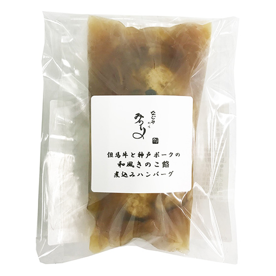 | 原材料 | ハンバーグ(食肉(牛肉、豚肉)(兵庫県産)、ソテーオニオン(国内製造)、つなぎ(パン粉、鶏卵、粉末状小麦たん白、でん粉、小麦粉加工品)、牛脂、食塩、香辛料/調味料(アミノ酸等)、ソース(しょうゆ、きのこ類(しいたけ、えのき、ぶなしめじ)、みりん、まぐろ削りぶし、でん粉、昆布、食塩)、(一部に卵・小麦・牛肉・大豆・豚肉を含む) |