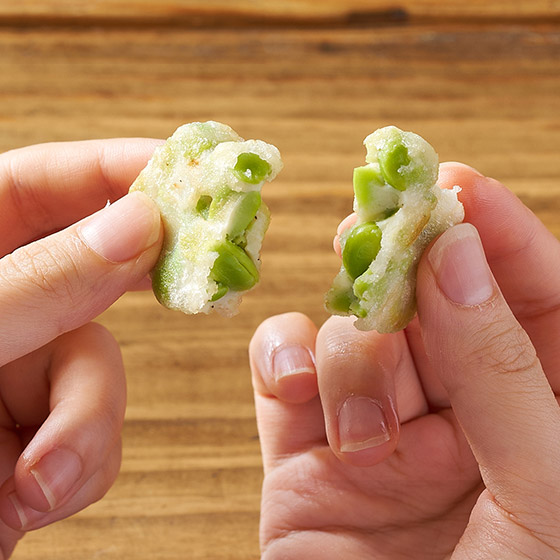 | 原材料 | 枝豆(ベトナム産)、魚肉すり身(いとよりだい、砂糖)、たまねぎ、豆腐、植物油脂、粉末状大豆たん白、でん粉、食塩、砂糖、醤油、魚介エキス、酵母エキス、香辛料、衣(小麦粉、でん粉、食塩)、揚げ油(大豆油)/加工でん粉、豆腐用凝固剤、(一部に小麦・大豆を含む) |