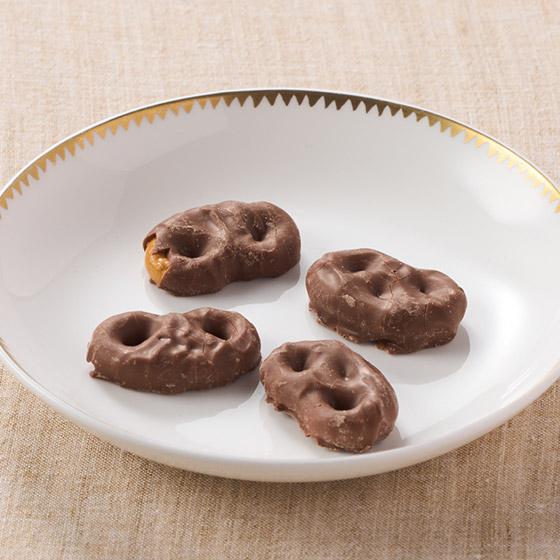 | 原材料 | ミルクチョコレート(砂糖、全粉乳、ココアバター、カカオマス)、プレッツェル(小麦粉、食塩、食物油(大豆を含む)、コーンシロップ、酵母)/乳化剤、香料、ナイアシン、鉄、V.B1、V.B2、葉酸、膨脹剤 |