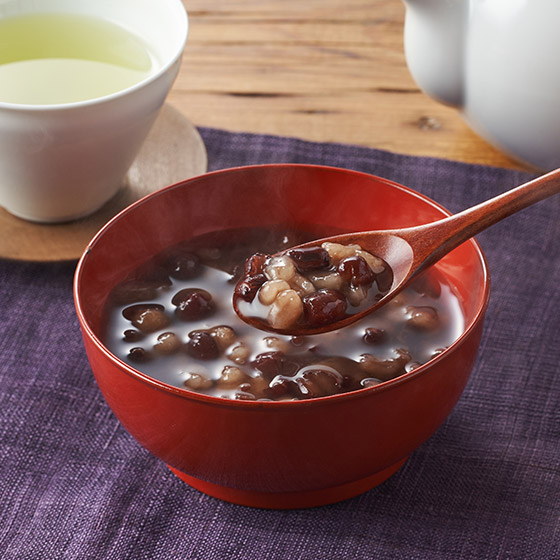 ■生姜の風味がふんわり広がる、あずき茶で作ったもち麦ぜんざい