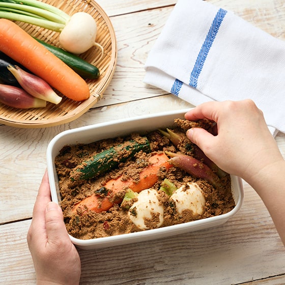 ■オリーブ果実をすり潰し米糠とブレンドしたぬか床です。