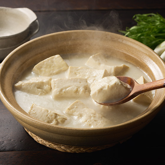 ■淡雪のようなとろける触感が楽しめる姫野温泉の名物湯豆腐です。