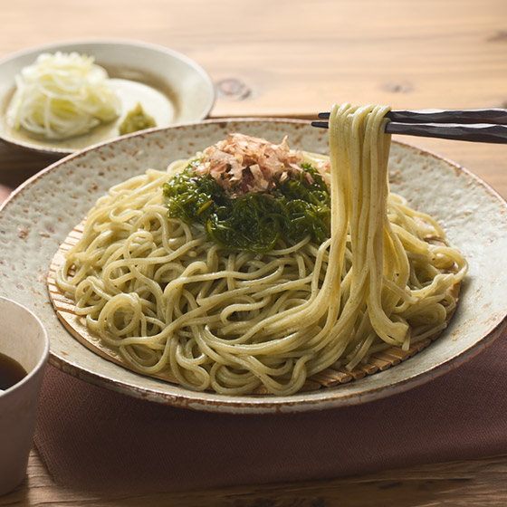 ■三陸産めかぶ粉末を練り込んだ磯の香り豊かなお蕎麦