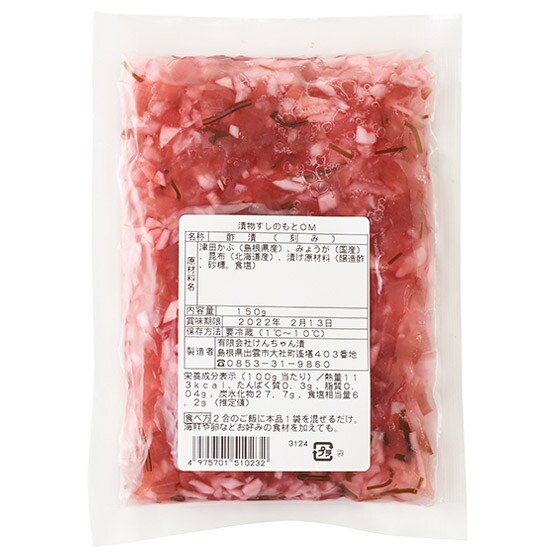 | 原材料 | 津田かぶ(島根県産)、みょうが(国産)、昆布(北海道産)、漬け原材料(醸造酢、砂糖、食塩) |
