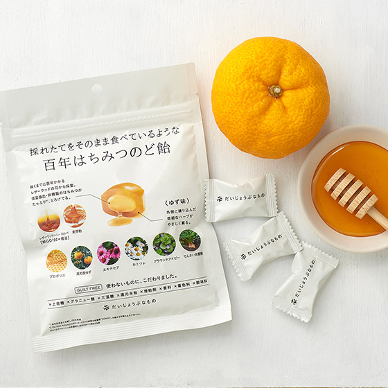 ■香りまでおいしい、高知県産ゆずと百年はちみつがとろけ出すのど飴。