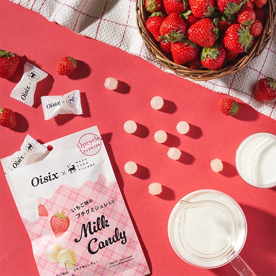 | 原材料 | 砂糖(国内製造・タイ製造)、水飴、ゼラチン、牛乳、食用油脂、いちご濃縮果汁(とちおとめ(栃木県産))/甘味料(ソルビット)、酸味料、香料、乳化剤、(一部に乳成分を含む) |