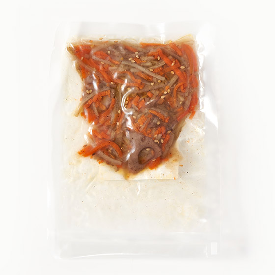 | 原材料 | ごぼう(国産)、人参、れんこん、ごま油、白醤油、醗酵調味料、砂糖、麦芽水あめ、たん白加水分解物、ごま、椎茸粉末、食塩、梅酢、(一部に小麦・大豆・ごまを含む) |