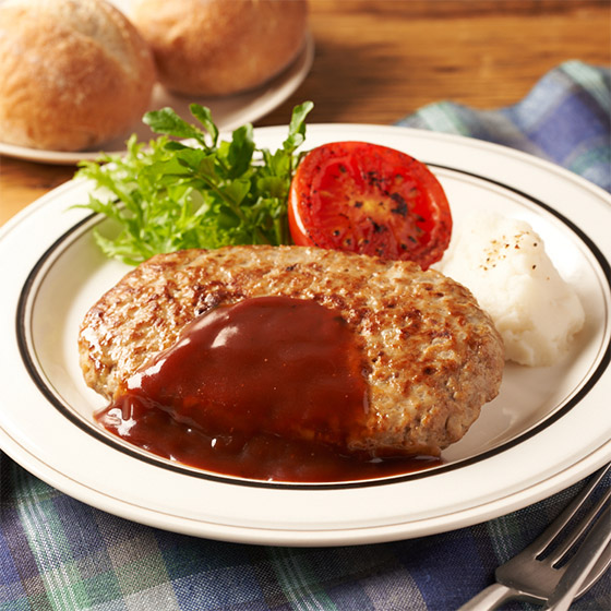| 原材料 | 食肉(牛肉(オーストラリア産)、豚肉(アメリカ産)、鶏肉(国産))、玉葱(国産)、つなぎ(卵白、パン粉、小麦粉、粉末状大豆たん白)、豚心臓、豚脂、粒状大豆たん白、ウスターソース、砂糖、食塩、香辛料、酵母エキス/着色料(カラメル、カロチノイド)、香料、(一部に小麦・卵・乳成分・牛肉・大豆・鶏肉・豚肉を含む) |