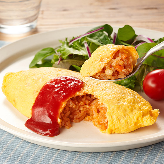 原材料 | 鶏卵(国産)、精白米(国産)、野菜(たまねぎ(国産)、にんじん(国産))、鶏肉(国産)、トマトケチャップ、なたね油、還元水あめ、バター、醗酵調味料、チキンエキス、砂糖、食塩、トマトペースト、脱脂粉乳、こしょう/加工でん粉(小麦由来)、トレハロース |