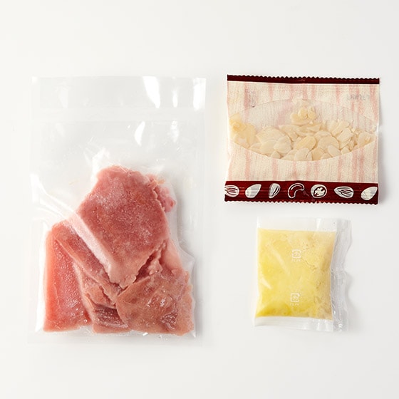 原材料 | 【めばち鮪切落し】めばち鮪(日本)、植物油/pH調整剤、酸化防止剤(ビタミンC,ビタミンE) 【カルダモンドレッシング】オリーブオイル(スペイン産)、食塩、マスタード、濃縮レモン果汁、カルダモン 【スライスアーモンド】アーモンド(アメリカ) |