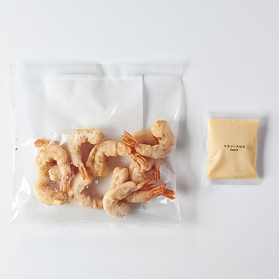 原材料 | フリッター:えび(エクアドル産)、衣(小麦粉、でん粉、食塩、魚醤パウダー、香辛料、酵母エキス、大豆粉、鶏卵、脱脂粉乳)、揚げ油(なたね油、パーム油)/増粘剤(キサンタンガム)、(一部に卵・乳成分・小麦・えび・大豆を含む) マヨソース:植物油脂(国内製造)、砂糖、加工卵黄、ホエイパウダー、食塩、レモン濃縮果汁、醸造酢、香辛料、酵母エキス/増粘剤(加工デンプン、キサンタン)、乳化剤、(一部に卵、乳成分を含む) |