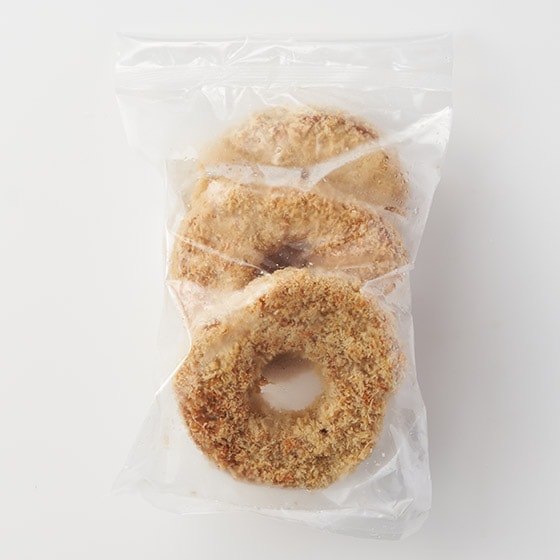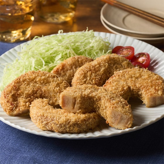 原材料 | パン粉(国内製造)、なたね油、麩、調合醤油(醤油、砂糖、食塩、かつお削り節、みりん、かつおエキス、こんぶエキス、醸造酢、酵母エキス)、ミックス粉(小麦粉、加工米粉)、米発酵調味料、砂糖、(一部に小麦・大豆を含む) |