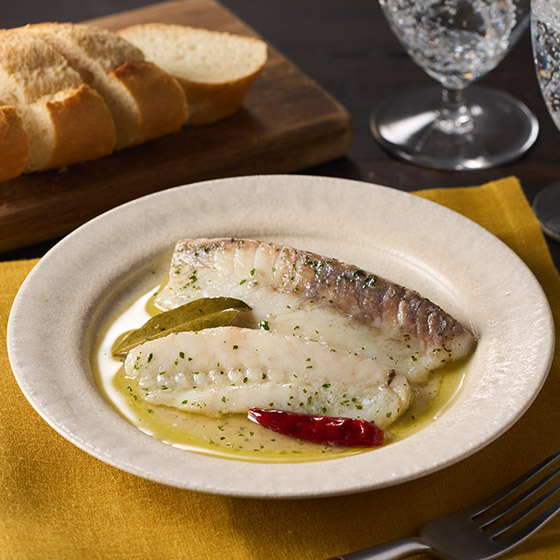 ■香草オイルでじっくり低温熟成させたアイゴのコンフィ