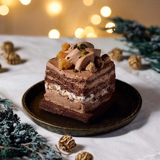 | 原材料 | 生クリーム(国内製造)、クーベルチュールチョコレート、小麦粉、卵、てんさい糖、バター、くるみ、牛乳、オレンジピール、オレンジペースト、アーモンドパウダー、ココア、水あめ、洋酒、ドライアプリコット、ドライフィグ、ピスタチオ/バニラ香料、(一部に卵・乳成分・小麦・くるみを含む) |