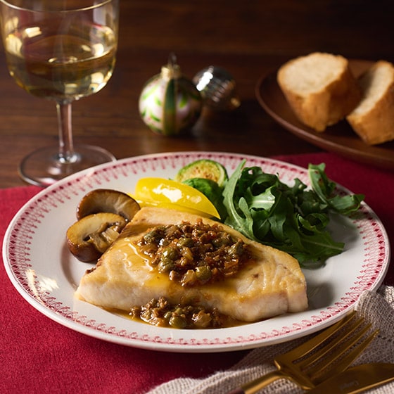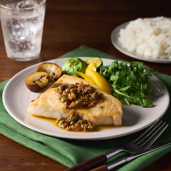 ■メカジキステーキをケッパーソースでお召し上がりください。