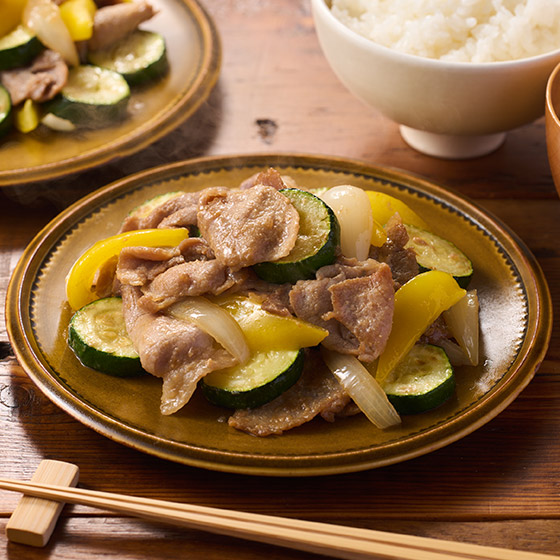 野菜を加えて!みつもち豚のあめ色玉ねぎソース炒め