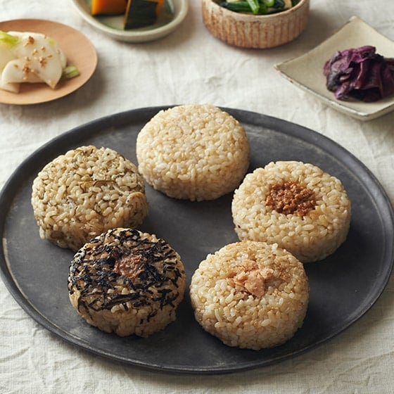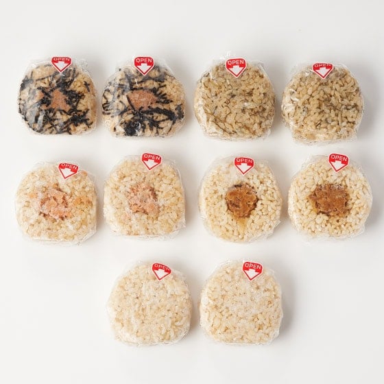 | 原材料 | 【玄米おにぎり】玄米(国産)、食塩、醸造酢 【玄米大豆肉味噌おにぎり】玄米(国産)、大豆肉味噌(米糀、大豆たん白、その他)、食塩、醸造酢、(一部にごま・大豆を含む) 【玄米鮭ごまおにぎり】玄米(国産)、鮭フレーク、食塩、醸造酢、いりごま、(一部にごま・さけを含む) 【玄米じゃこ昆布おにぎり】玄米(国産)、ちりめん、だし醤油、がごめ昆布、(一部に小麦・大豆を含む) 【玄米梅のりおにぎり】玄米(国産)、紀州練梅、だし醤油、海苔(国産)、(一部に小麦・大豆を含む) |