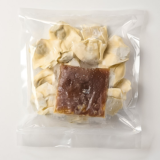 | 原材料 | ワンタン:皮[小麦粉(小麦(国産))、でん粉、なたね油、食塩]、具[野菜(国産(長ねぎ、しょうが))、食肉(国産(豚肉、鶏肉))、豚脂(国産)、粒状大豆たん白、しょうゆ(大豆・小麦を含む)、食塩、砂糖、発酵調味料、清酒、ごま油、こしょう]、打ち粉[ばれいしょでん粉] スープ:ポークブイヨン、チキンエキス、しょうゆ(大豆・小麦を含む)、食塩、かつお節だし、酵母エキス、鶏油、砂糖、昆布エキス、ガーリック末、ごま油、こしょう |