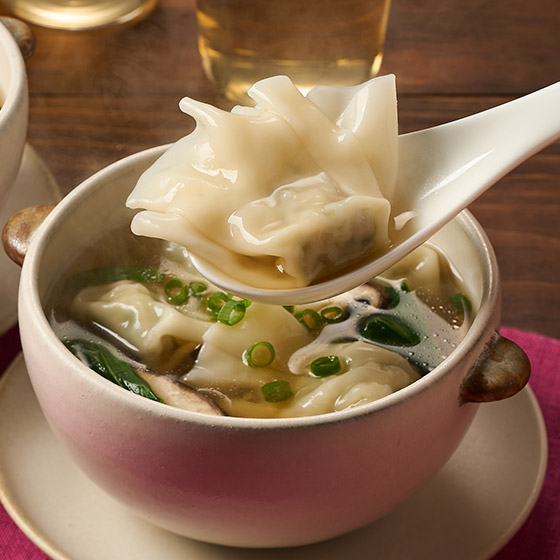 ■国産小麦のもっちり皮で包んだ、ねぎっぽ入りワンタン(スープ付)