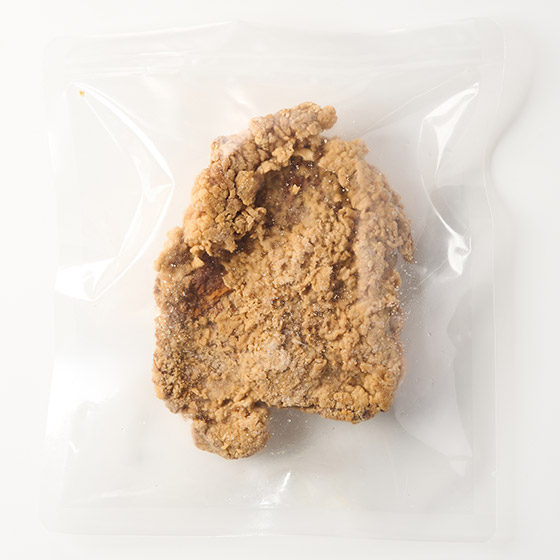 | 原材料 | 鶏肉(タイ産)、馬鈴薯でん粉、コーンスターチ、醤油、清酒、小麦粉、生姜ペースト、すりにんにく、なたね油、砂糖、食塩、こしょう加工品、魚醤、ウーシャンフェン、パプリカパウダー、(一部に小麦・鶏肉・大豆を含む) |