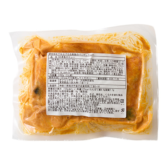 | 原材料 | 白身魚ムニエル(ミナミカゴカマス(ニュージーランド)、小麦粉、米油)、玉ねぎ、ミックス野菜(ズッキーニ、なす、赤パプリカ、黄パプリカ、パーム油、食塩)、タンドリーソース(トマトケチャップ、カレー粉、りんご酢、食塩、粉末油脂、砂糖、香辛料、にんにく、生姜、酵母エキス)、トマトミックスソース(トマト、砂糖、炒めたまねぎ、植物油脂(なたね油、オリーブオイル)、食塩、にんにく、酵母エキス、白ワイン、香辛料、チキンブイヨン)、牛乳、乳等を主要原料とする食品、食塩、チキンコンソメ/pH調整剤、酸味料、乳化剤、カゼインNa、増粘剤(キサンタン)、着色料(パプリカ、カロチノイド)、安定剤(増粘多糖類)、(一部に乳成分・小麦を含む) |